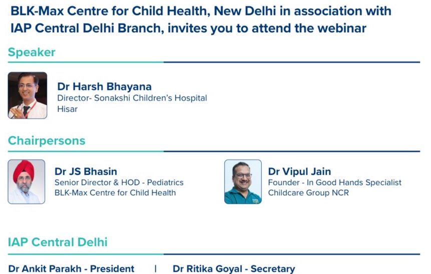 BLK Centre for Child Health in association with IAP Central Delhi Branch conducted its monthly edition of BLK TELE-PEDS Webinar on 12th MARCH 2026